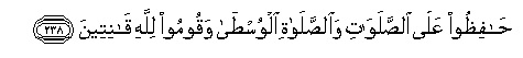 “Namazları ve orta namazını (üstlerine düşerek, titizlik göstererek) koruyun ve Allah’a gönülden boyun eğiciler olarak (namaza) durun.” (Bakara Suresi, 238)