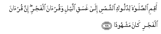 “Güneşin batıya yönelmesinden gece karanlığına kadar namazı kıl. Tanyeri ağarırken de sabah namazını kıl. Zira bu namaz görülmeye değerdir.” (İsra Suresi :78)