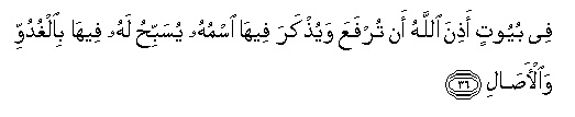 “(Bu nur,) Allah’ın, onların yüceltilmesine ve isminin zikredilmesine izin verdiği evlerdedir; onların içinde sabah akşam O’nu tesbih ederler.” (Nur Suresi, 36)