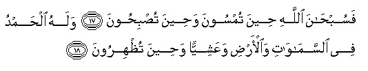 “Öyleyse akşama girdiğiniz vakit de, sabaha erdiğiniz vakit de Allah’ı tesbih edip (yüceltin). Hamd O’nundur; göklerde ve yerde, günün sonunda ve öğleye erdiğiniz vakit de.” (Rum Suresi, 17-18)
