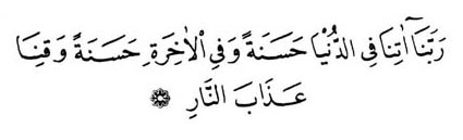 Okunuşu: Rabbenâ âtinâ fid’dünyâ haseneten ve fil’âhirati haseneten ve kınâ azâbennâr. Birahmetike yâ Erhamerrahimîn.